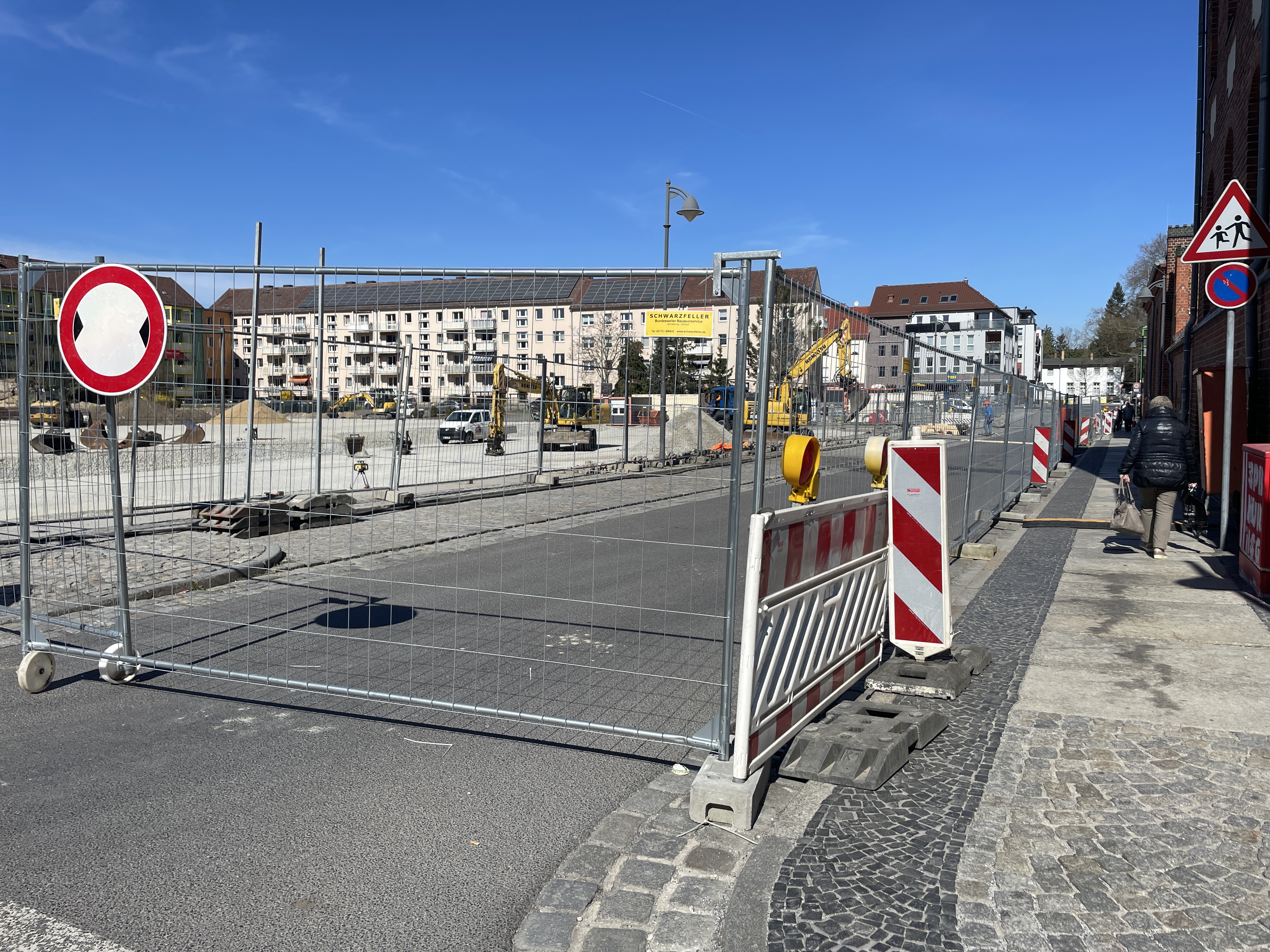 Fußgängerinnen und Fußgänger können den Gehweg aber weiterhin benutzen, um zwischen dem Busbahnhof und der Langen Straße zu gelangen.